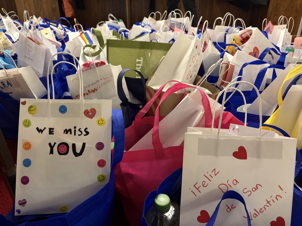 The above photograph is of Valentine bags going home to elementary school children in hiding.